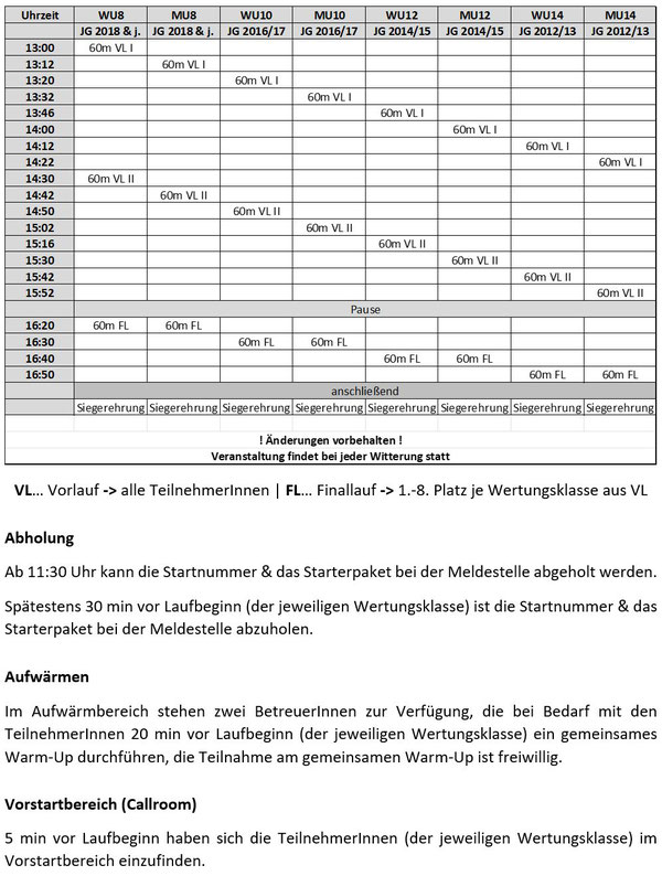 - (VL 1 + VL 2) qualifizieren sich für den Finallauf (60 m)